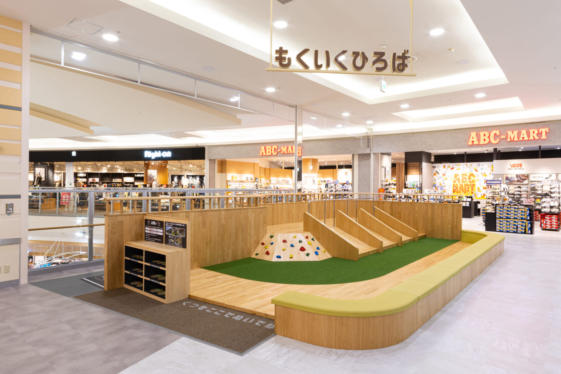 また、子育て世代やファミリー層に向けて、芝生と遊具で遊べる屋根付きの屋外パーク「もりっこぱーく」と、岩手県産木材を活用した温もりある室内広場「もくいくひろば」を新設。