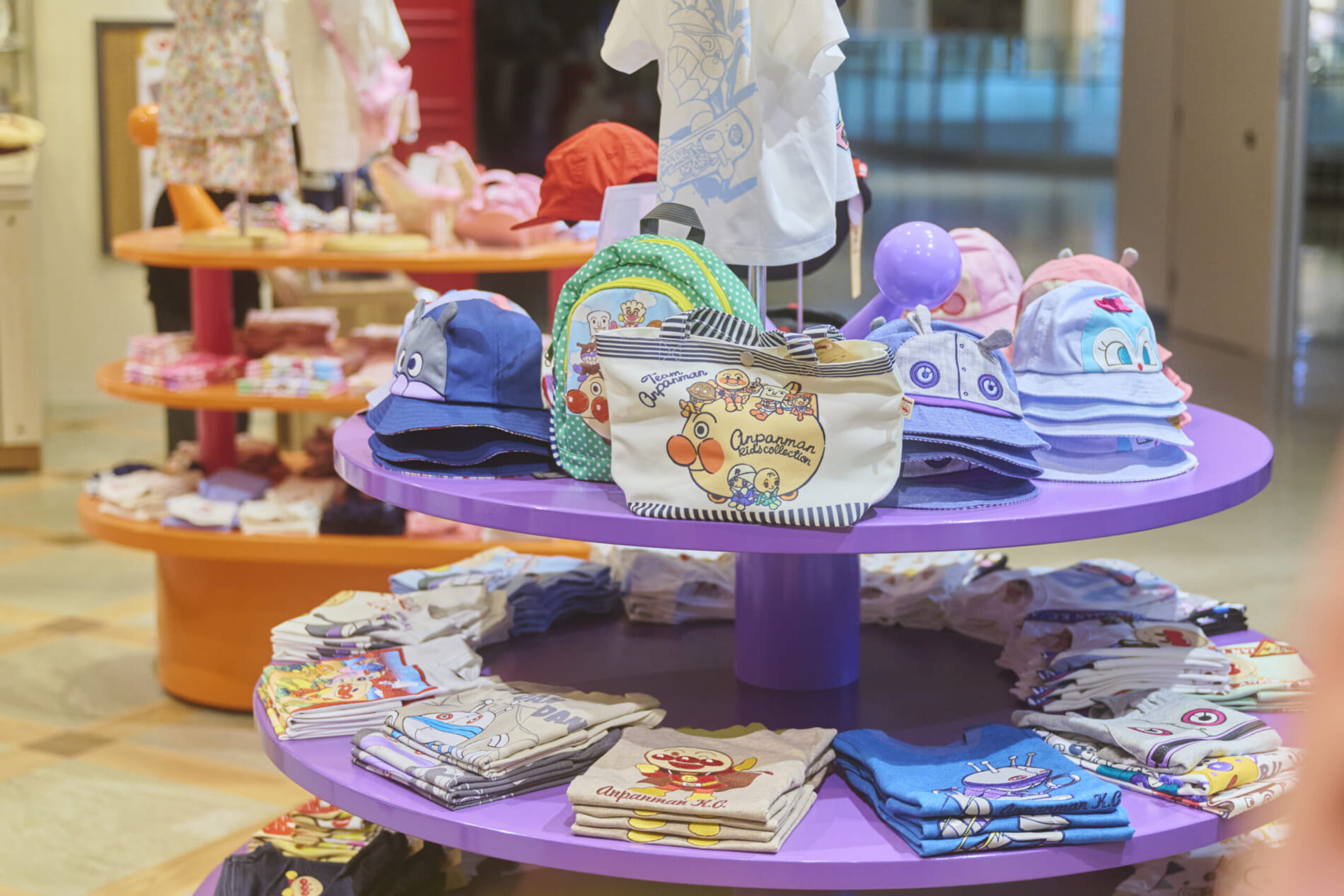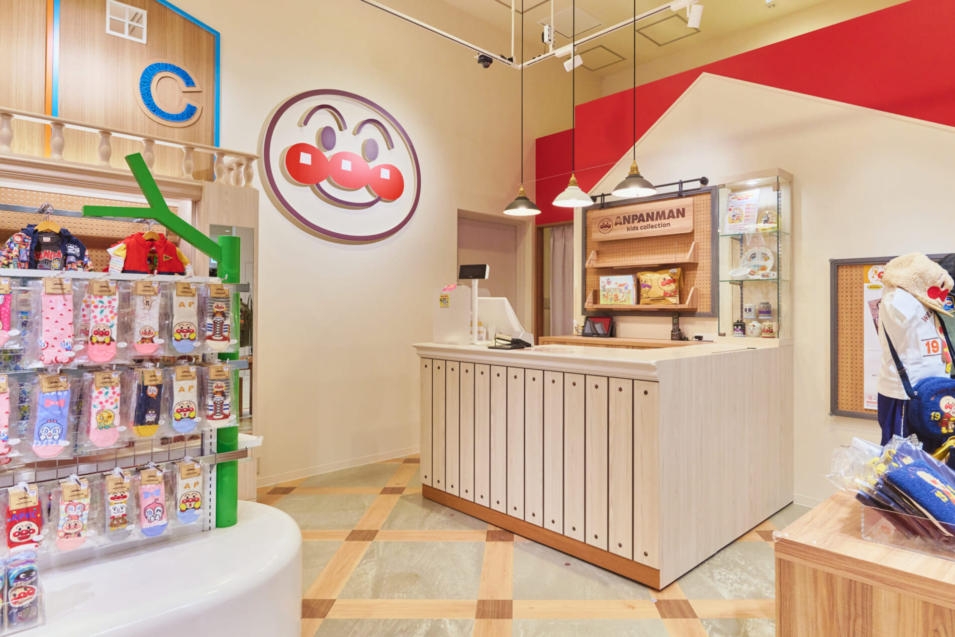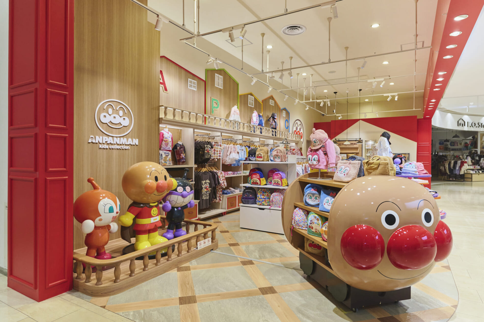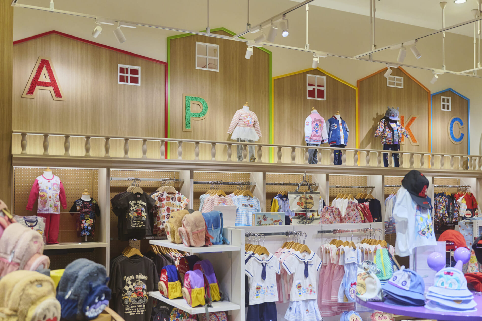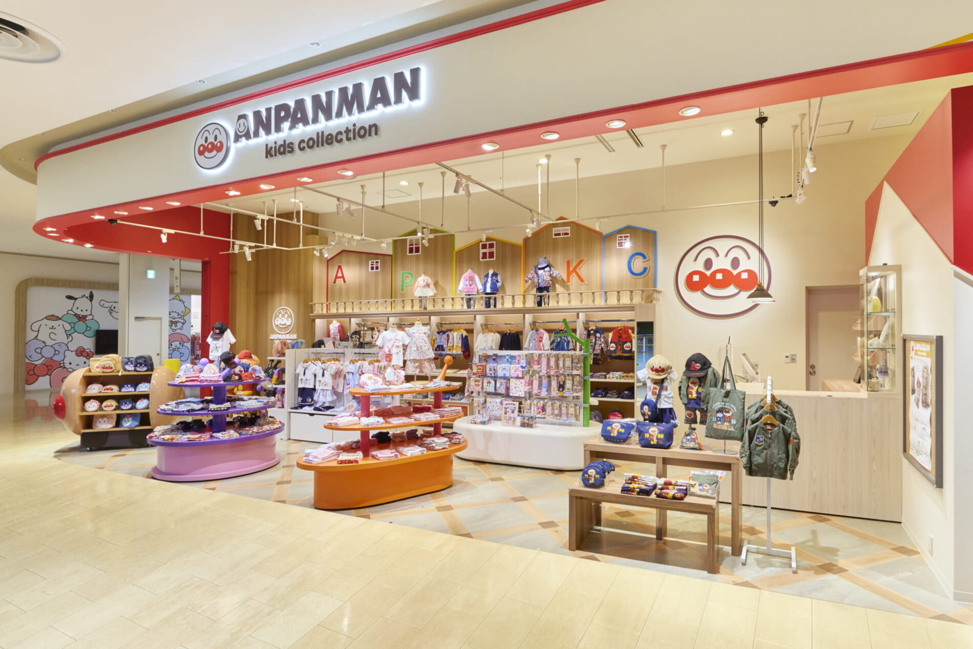 「着ているだけで笑顔になる」をコンセプトに、「それいけ!アンパンマン」の楽しい世界観とオシャレなデザインを融合させた子供服ブランド「アンパンマンキッズコレクション」。本店舗では、キャラクターの魅力を活かし、楽しく華やかな空間を創造しました。