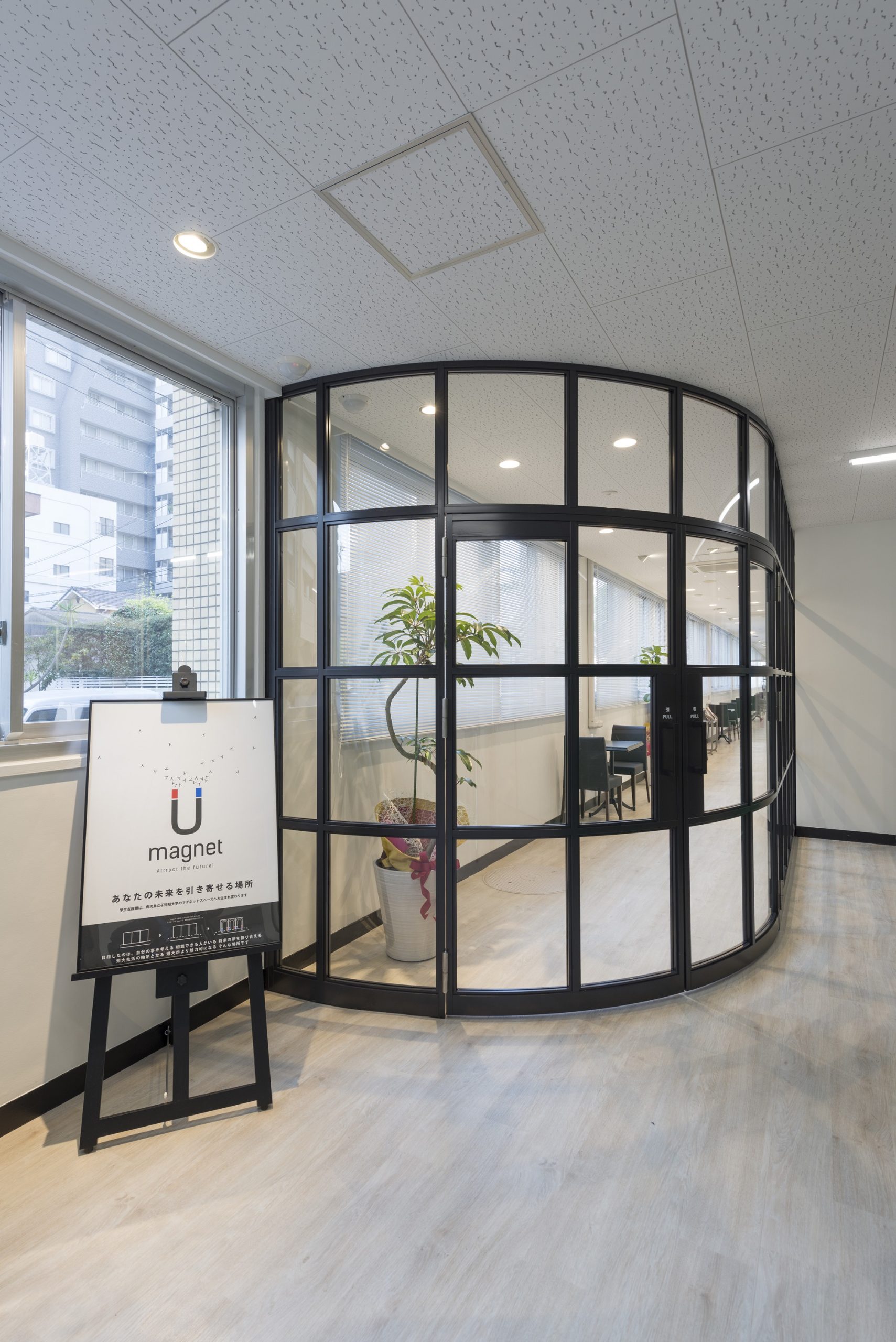 連続したサッシが、部屋と廊下を一体空間として見せながら、空間を緩やかに仕切ります。中にいる学生や職員の様子がオープンに見え明るく開けた空間となり、気軽に立ち寄りやすい鹿児島女子短期大学にとっての“マグネットスペース”へと生まれ変わりました。