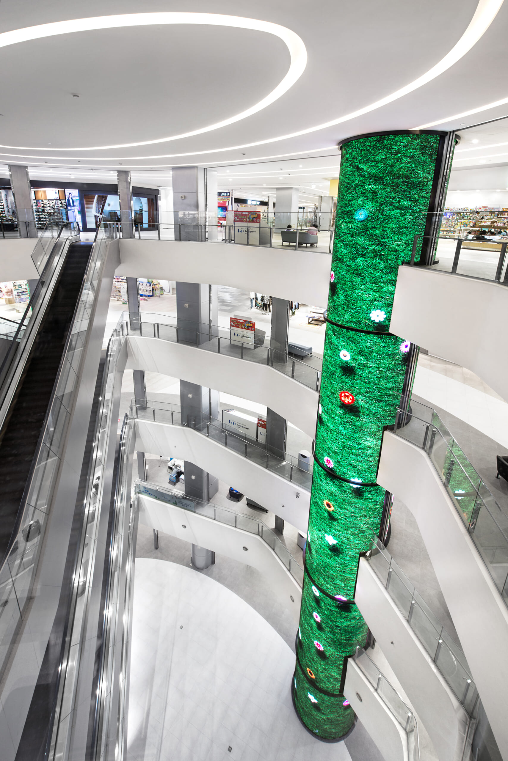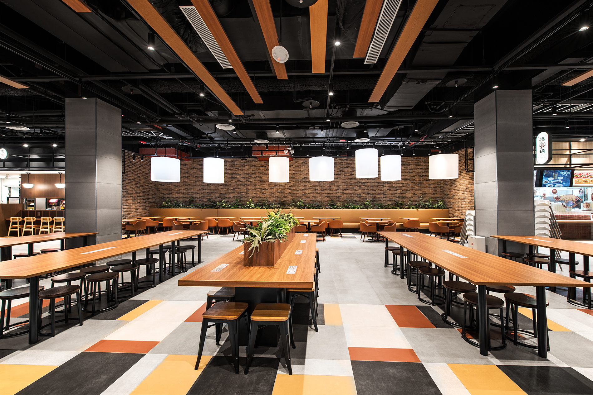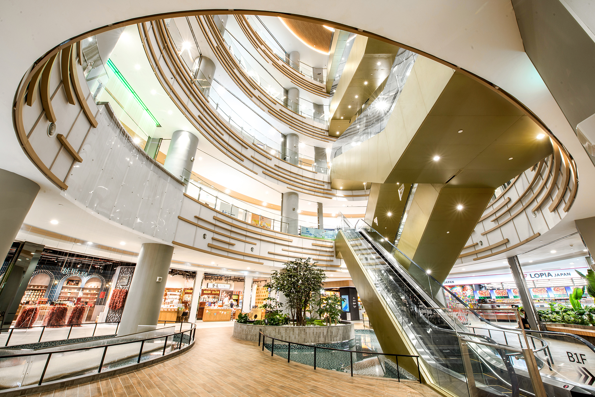 多層階をつなぐ吹抜け空間には水景演出とデジタルサイネージを導入し、来訪者の体験価値を高めるダイナミックな空間を創出しました。地下1階のフードマーケットは “TAIWAN EXPERIENCE” をテーマに、夜市から着想を得た活気とライブ感を演出。オープンでエネルギーに満ちた飲食体験を提供します。