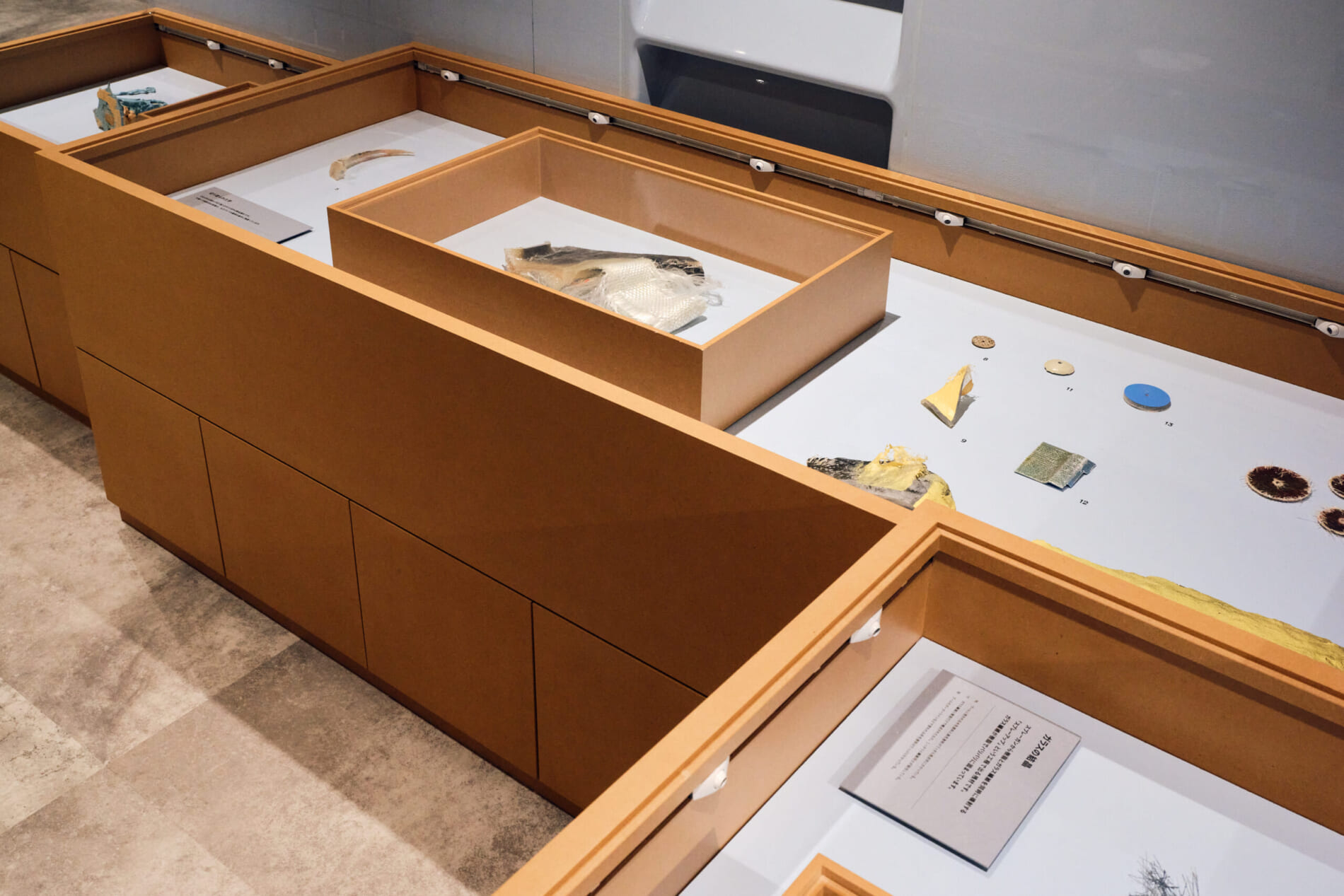 さらに、コンテンポラリースタジオwe+と共同で、FRP端材や廃材を用いたアートワーク展示を制作。これまでゴミとして見過ごしてきたものを改めてじっくりと観察することによって、自らの中にある固定概念に気づき、視点が切り替わっていくことを体感することができます。共創スペースを初めて訪れた人に対する、リジェネラティブへの導入の役割を果たします。