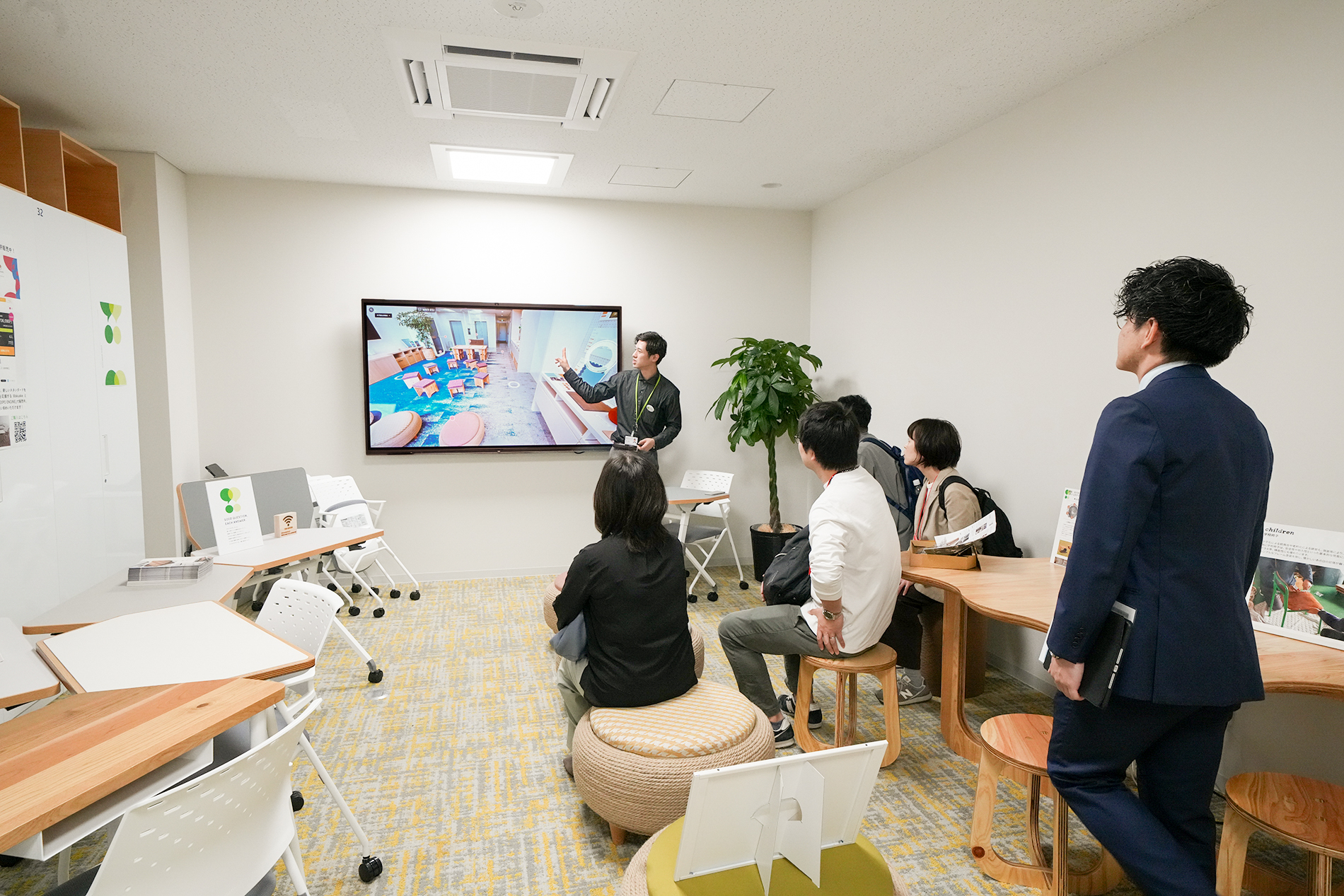 昨年末にショールーム型オフィスとしてリニューアルした「SEMBA Good Ethical Office -Fukuoka-」 の見学ツアーを実施。「共創パートナーと創り続けるショールームオフィス」をコンセプトに、社員自らの手で作り上げたオフィスをご紹介しました。
