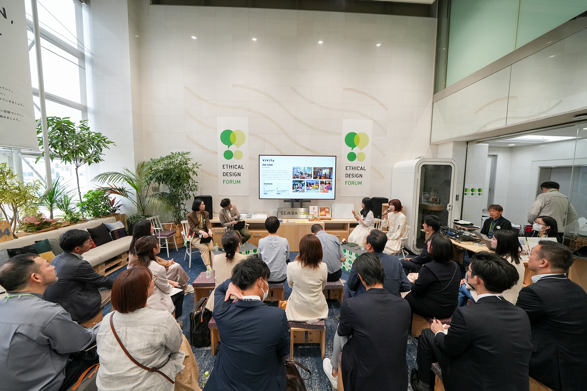当社は、人や地域社会、自然環境へ配慮し、サプライチェーン全体で未来にやさしい空間を共創するエシカルデザインを推進しています。2021年より、共創パートナーとともにエシカルな活動を発信し、来場者と共に未来を考えるイベントを開催。東京、大阪に続き、今回初めて福岡で開催し、合計150名を超える方々にご来場いただきました。