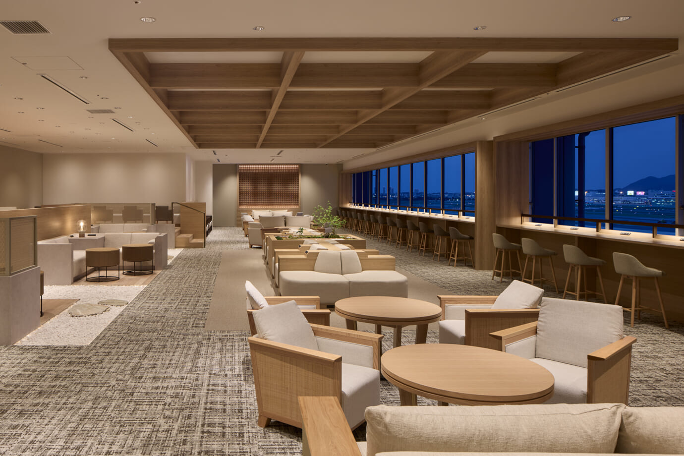 スムーズな利用を促す交通機能と、視覚的な美しさを掛け合わせた内装デザインを行うことで、様々な機能が混在する場でも、迷うことなく利用できる空港空間を創り上げました。