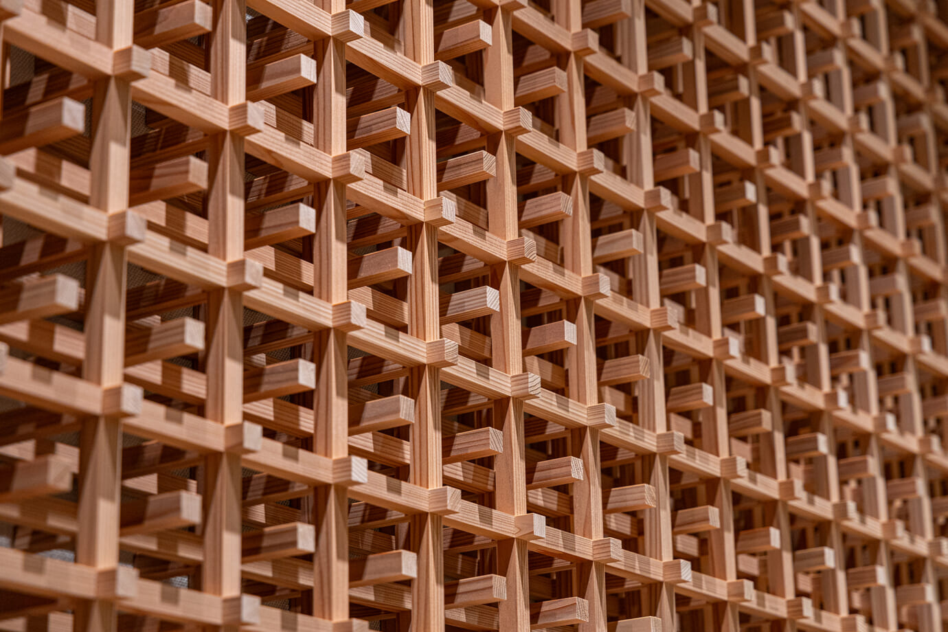 大川組子の壁面ディスプレイ