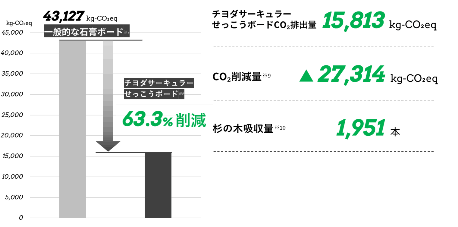 ※9.CO₂削減量 = J-CAT CO₂排出量 ー チヨダサーキュラーせっこうボードCO₂排出量