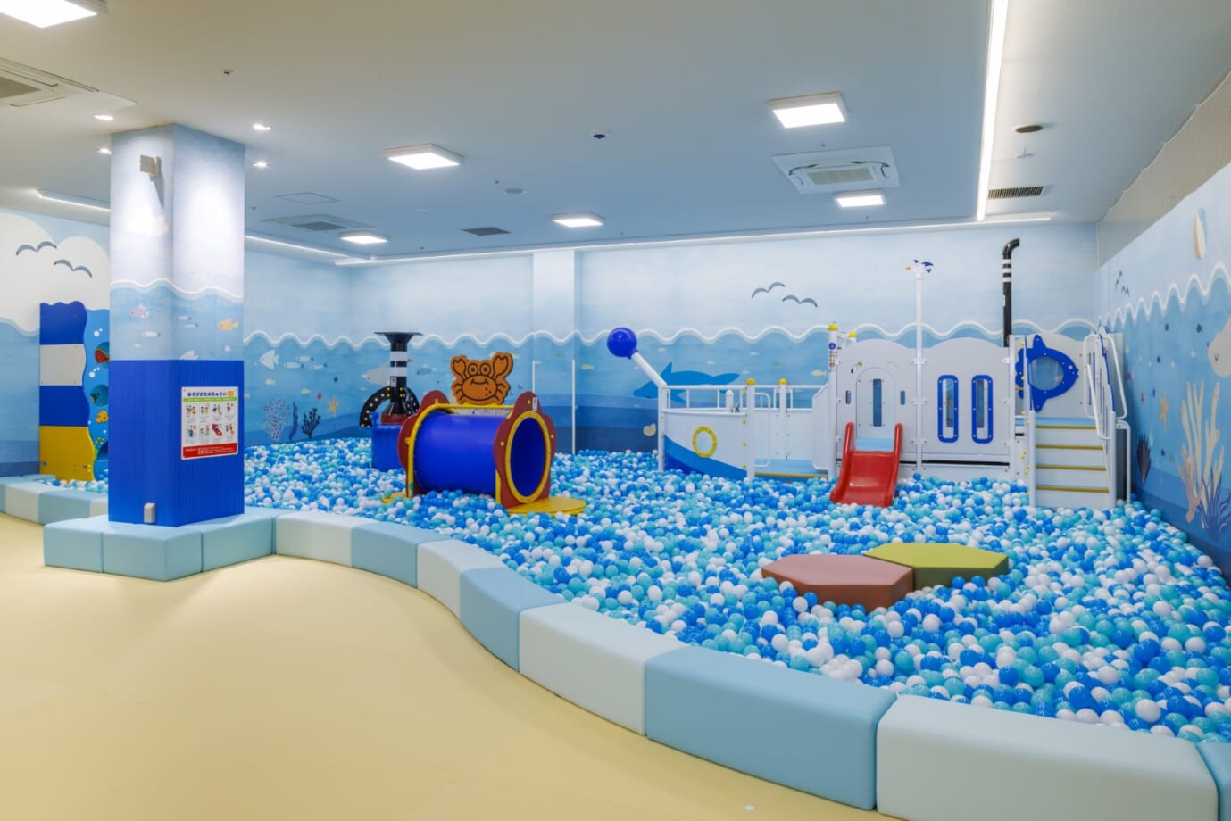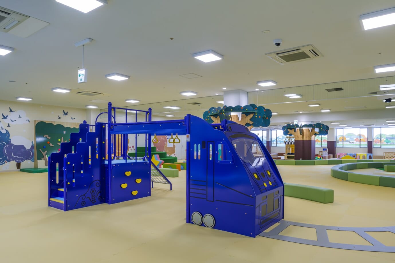 施設デザインは「ゆくと!ゆくはし~創造と探求のTrain Journey~」を提案時のコンセプトとし、行橋の自然や文化をデザインモチーフに、約1,470㎡の大規模な空間を構成しました。海水浴場が身近にある地域性から着想した海をイメージしたボールプールや、行橋市でおなじみの特急電車をモチーフにした遊具、市の花であるコスモスを模した回転遊具など、地域の魅力を随所に取り入れることで、オリジナリティあふれる空間を実現しています。