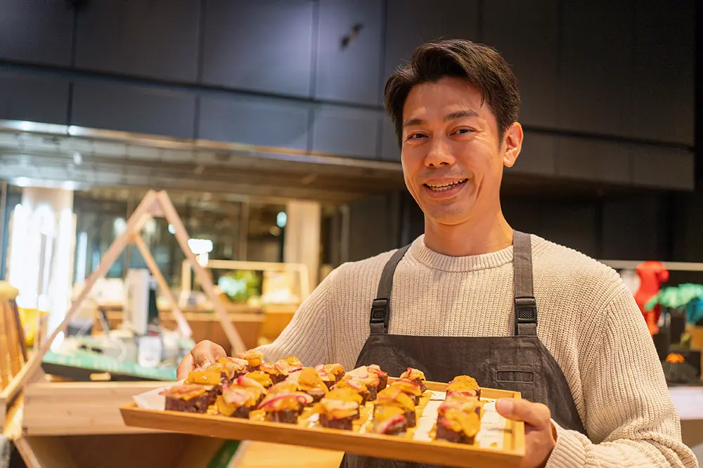 エシカルな素材やプロダクト、サービス実演など、60社もの共創パートナーによる個性豊かな取り組みを紹介。おいしいコーヒーを片手に、空間・体験づくりのヒントとなる様々な展示をご覧いただきました。会場を一周した最後には、共創パートナーから集めた様々な端材が当たる、エシカルなくじ引き「はざいくじ」をご用意。自由で楽しい「はざい」を通して、資源循環を体験いただきました。