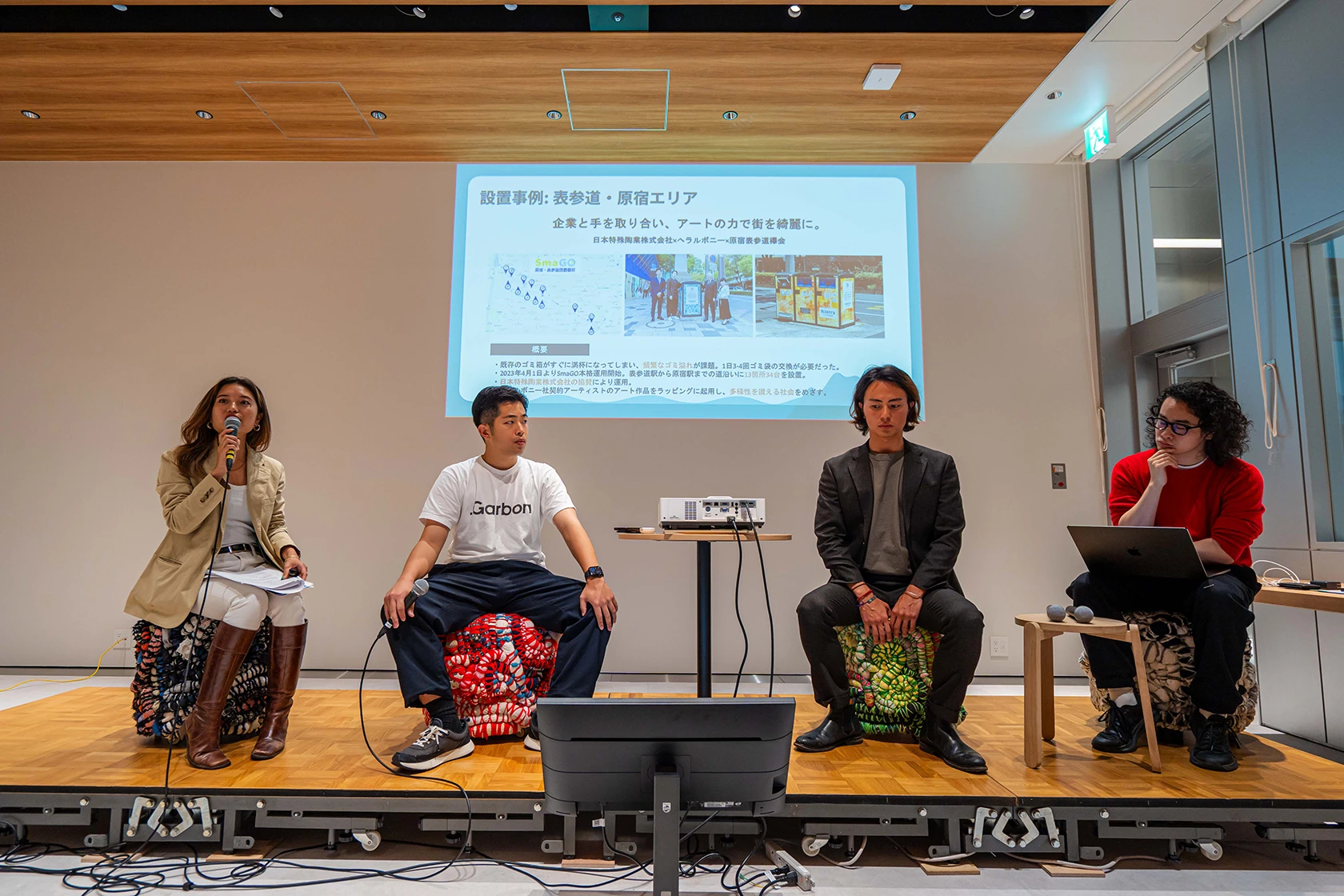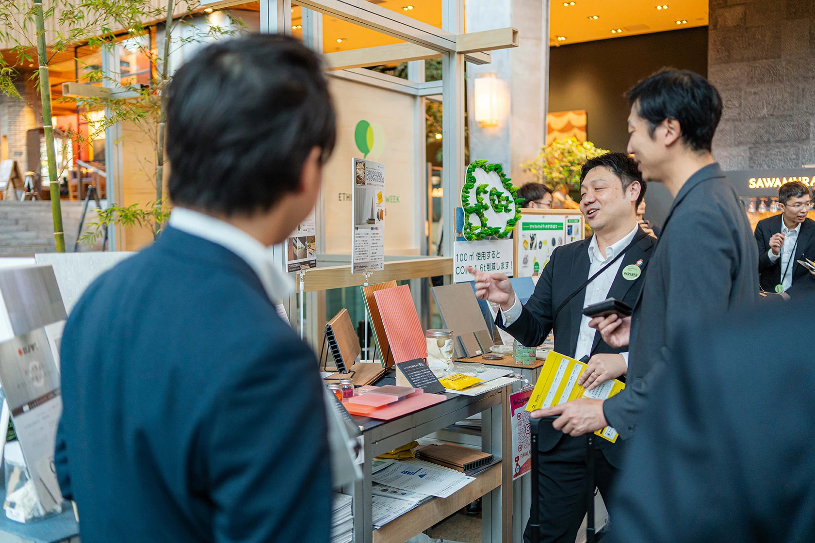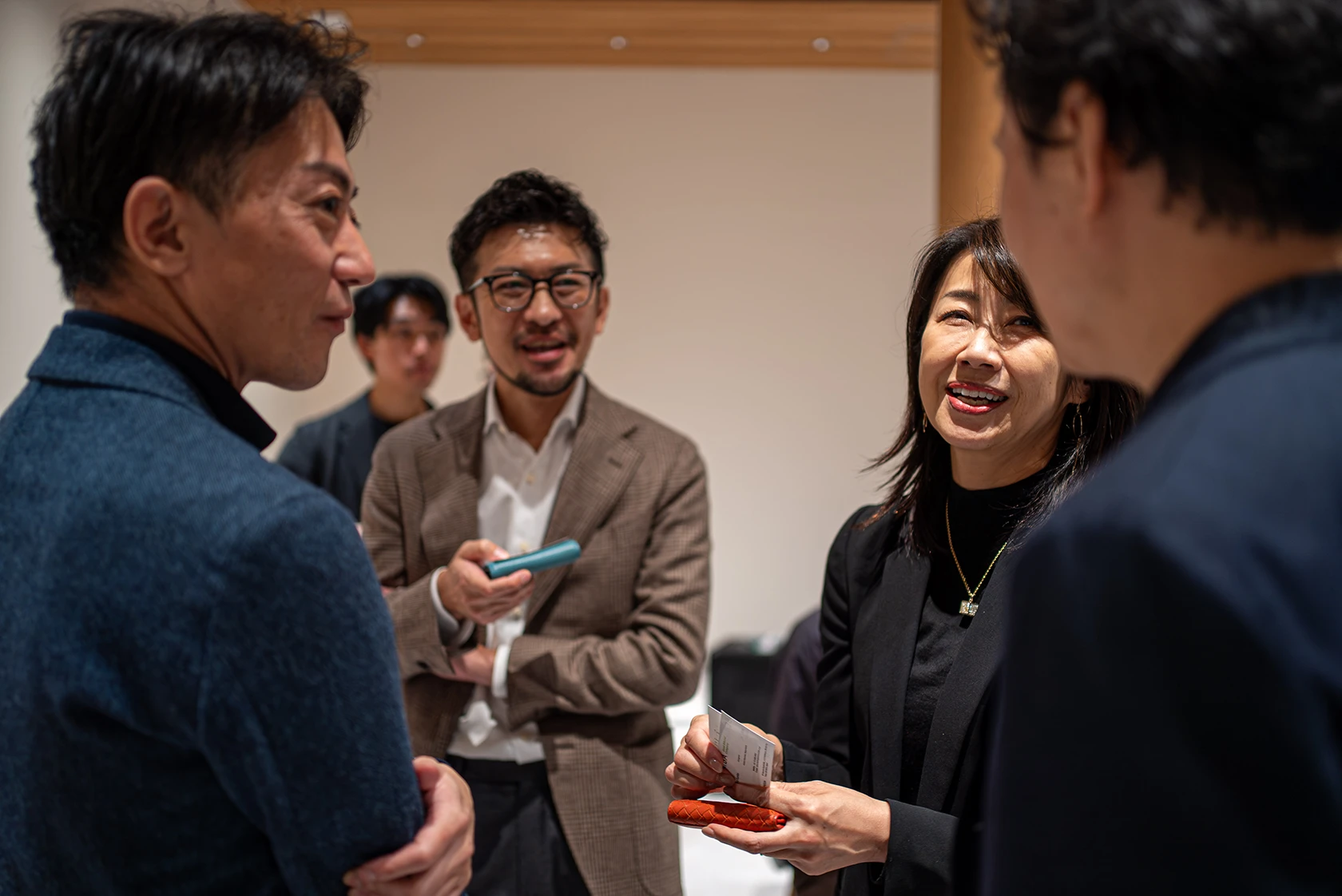 初日夜のオープニングレセプションでは、主催者が描くエシカルデザインの未来像をプレゼンテーションが行われました。さらに、展示出展者でもある俳優・小澤征悦氏やイベントディレクター・坂口真生氏を交え、「エシカルとビジネス」「身近なエシカルアクション」をテーマにトークセッションを実施。参加者や共創パートナーが集うネットワーキングでは、活発な交流が広がる中で、「ETHICAL DESIGN WEEK」のコミュニティが着実に育っていることを感じられる場となりました。