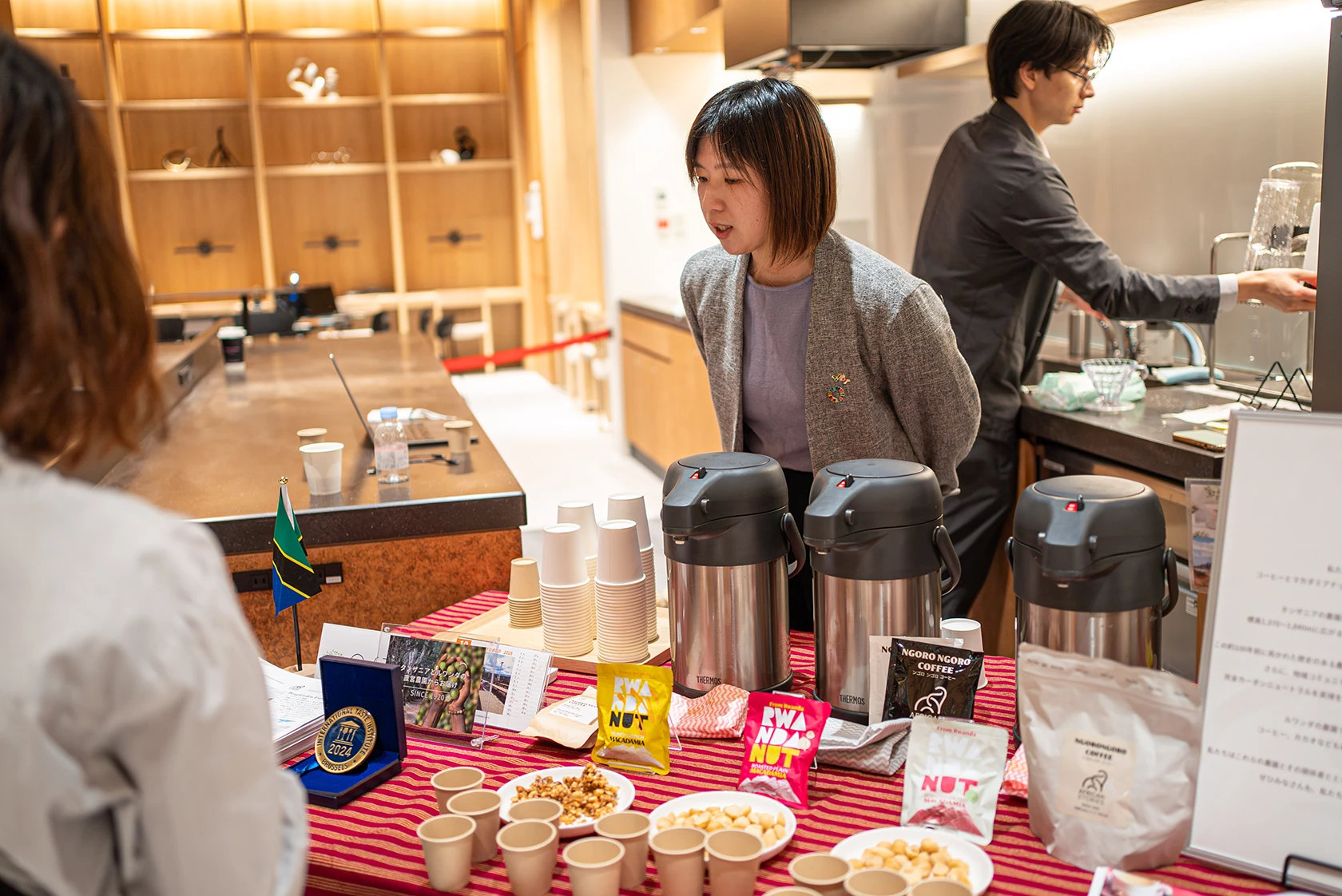 カンファレンス会場にて、アフリカの豊かな自然と共生する自社農園で栽培したホットコーヒーとマカダミアナッツをご提供。フェアな労働環境や認証取得など、背景にあるストーリーに共感する声も多く、美味しいコーヒーとともに、持続可能でエシカルな未来を考えるひとときとなりました。