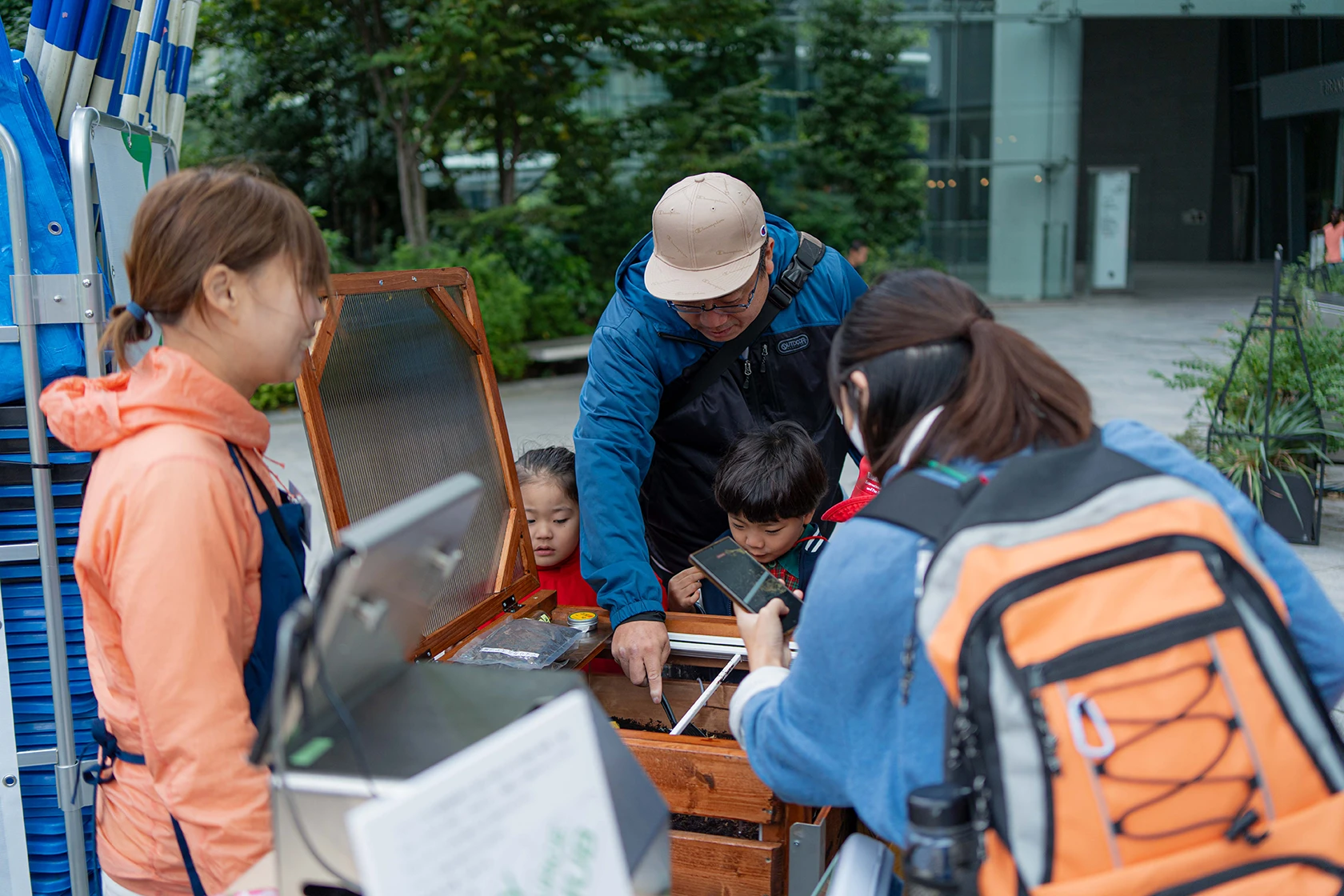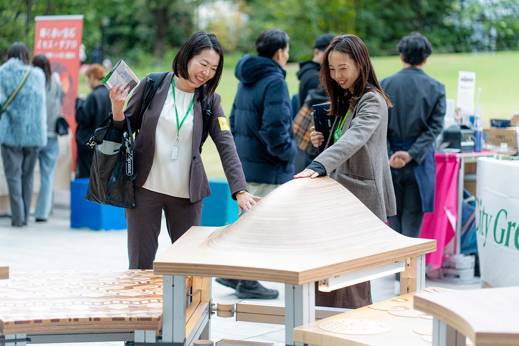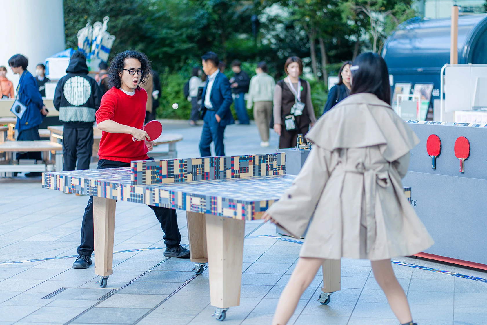 ステーションタワーに設置したリヤカー「RESOURCE BOX」と連動し、資源の回収・分別・分析を行う循環拠点「CITY RESOURCE HUB」が登場。資源循環への理解を深め、参加者の意識変容を促しました。さらに、木工職人の手仕事と3Dデジタル加工技術を掛け合わせたストリートファニチャー「MOKU²」、卓球ラケットの制作過程で生まれる余材を活かした卓球台「Ping-pong Block Project」も並び、広場は活気と創造性にあふれる空間となりました。