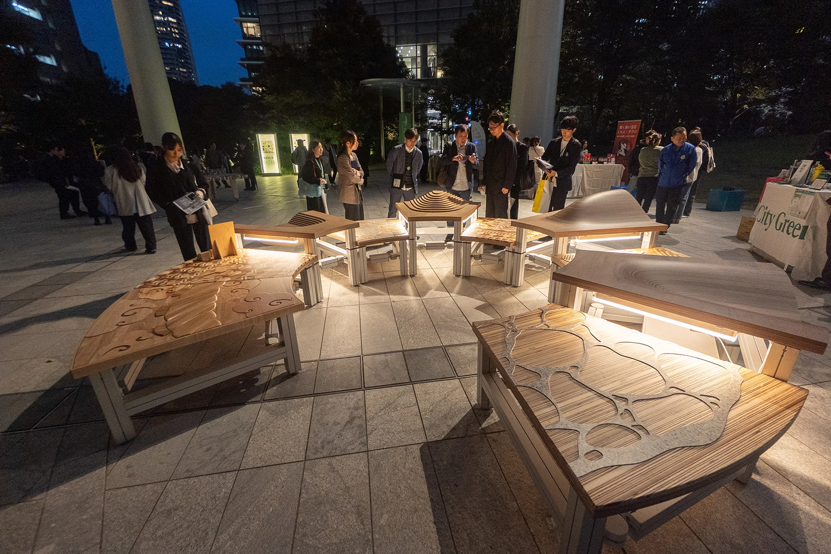 アーティストリーの3D木工加工技術を掛け合わせたプロダクトを展示し、都市空間における木材表現の可能性を拡げることに挑戦。個性的な形状とデザインが目を引き、存在感のある大きなストリートファニチャーに、多くの人が興味深々でした。 -